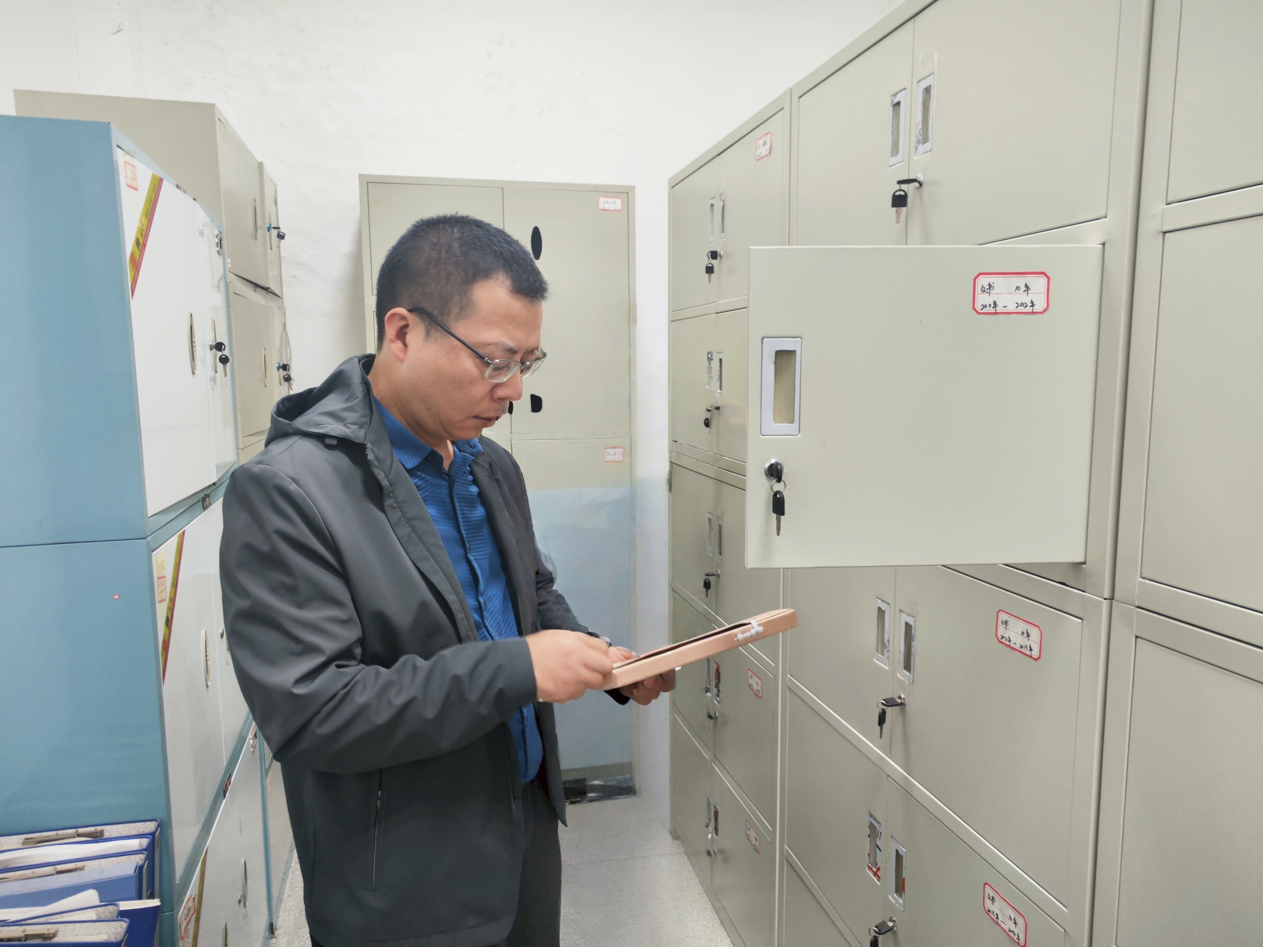 調(diào)研現(xiàn)場(chǎng),朱亞成一行先后查看了檔案室基礎(chǔ)設(shè)施建設(shè)、安全防護(hù)和視頻監(jiān)控等相關(guān)情況,重點(diǎn)抽查了各類檔案的歸檔、存儲(chǔ)、保管及查閱使用情況,全面掌握當(dāng)前檔案管理工作的實(shí)際現(xiàn)狀。